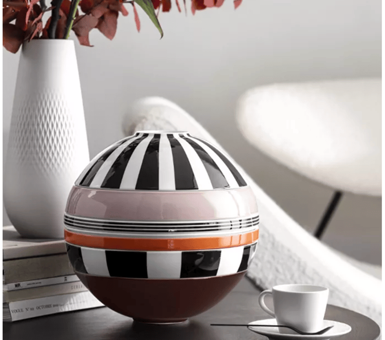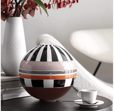 Originally inspired by Helen Von Boch’s iconic 1970s “Kugle,” this modern interpretation brings that same artistic spirit into today’s homes. The contrasting colors and bold shapes nod to the playful Memphis design style of the 1980s, making it feel both retro and refreshingly modern. Whether you live in a small space or simply love statement pieces, this is functional décor at its finest.