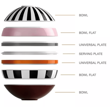 Inside the sphere, you get everything you need: two serving bowls, two pasta bowls, two dinner plates, plus a round serving plate, seven pieces in all. Dishwasher and microwave safe, it’s as practical as it is eye-catching. If you’ve ever wanted art you can eat off of, La Boule is the conversation-starting, space-saving, style-forward dinnerware set made just for you.