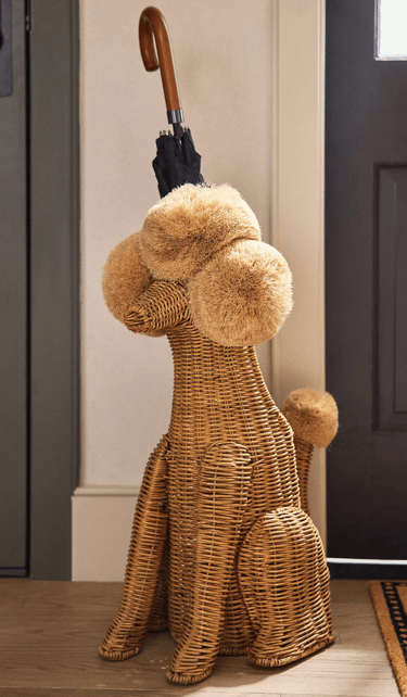If you adore poodles the way I do, this Anthropologie wicker basket is the kind of beautiful oddity that instantly feels like home. It is handwoven into a stately poodle form with fluffy pom‑pom accents, so it looks like an elegant sculpture more than a storage bin. It is all natural texture and personality, so it layers easily with any room style from a bright nursery to a cozy living space, and it never feels ordinary.